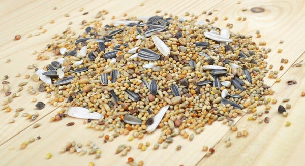 Grote parkieten kunnen perfect de zaden van deze mengeling pellen met hun kleine sterke snavels.
