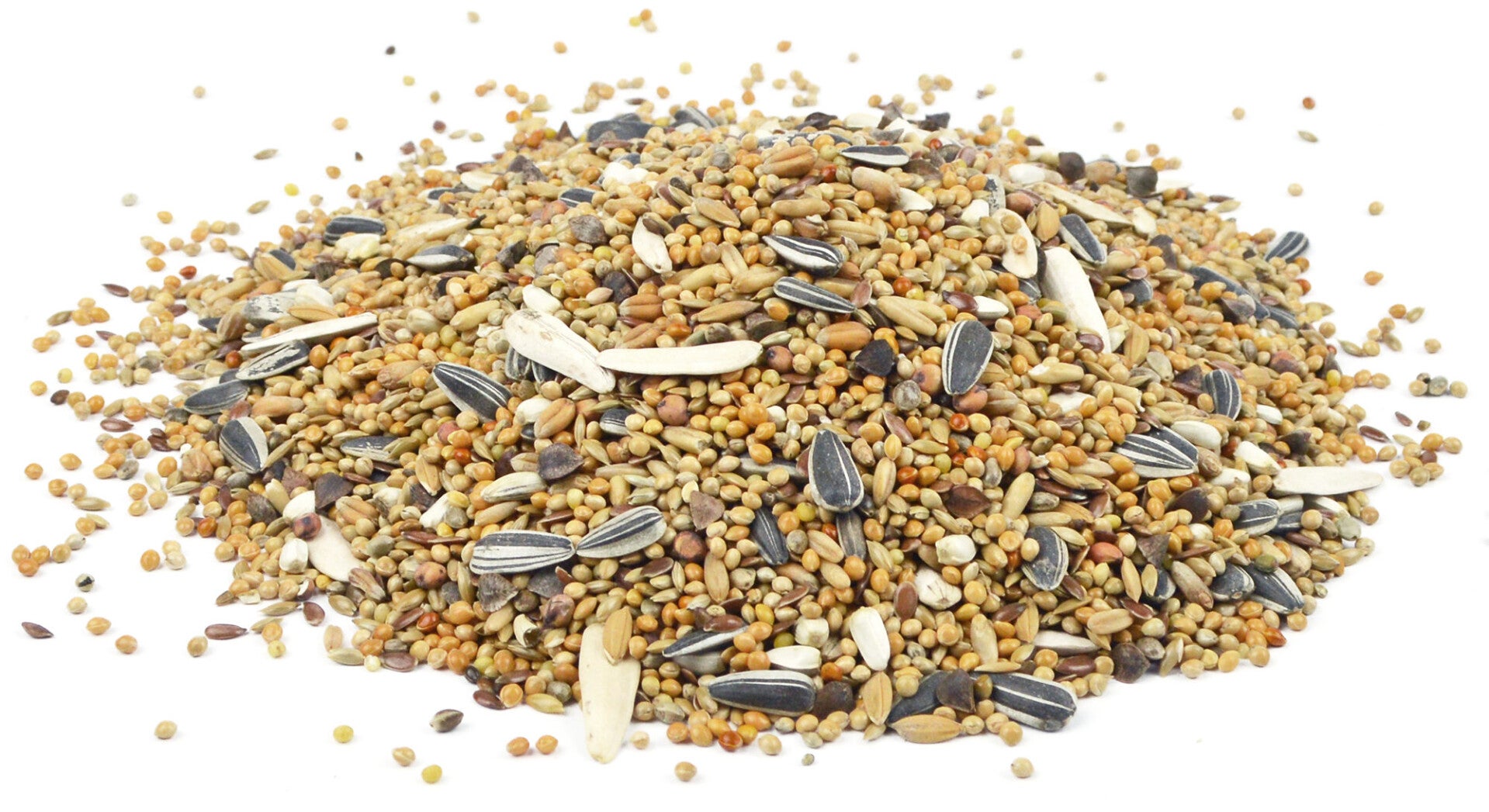 De mengeling bestaat uit: Rondzaad geel wit & rood - kanariezaad- gepelde haver- gestreepte & witte zonnepitten- saffloerzaad(cardy) - tarwe- boekweit- lijnzaad- kempzaad- soghum (milo) en paddy rijst